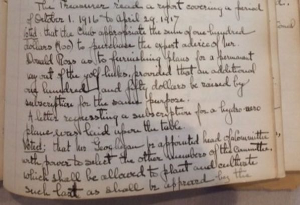 By 1915 the new golf course also became overcrowded and members petitioned the Board of Governors to expand the golfing facility to eighteen holes. In 1917 the Board consulted well know designer Donald Ross about this possibility. No further action with Mr. Ross was taken and it can be inferred from the Board of Governors Minutes that the Club did not own sufficient acreage for an eighteen-hole design. Soon after this consultation the United States entered the First World War and the project was delayed.