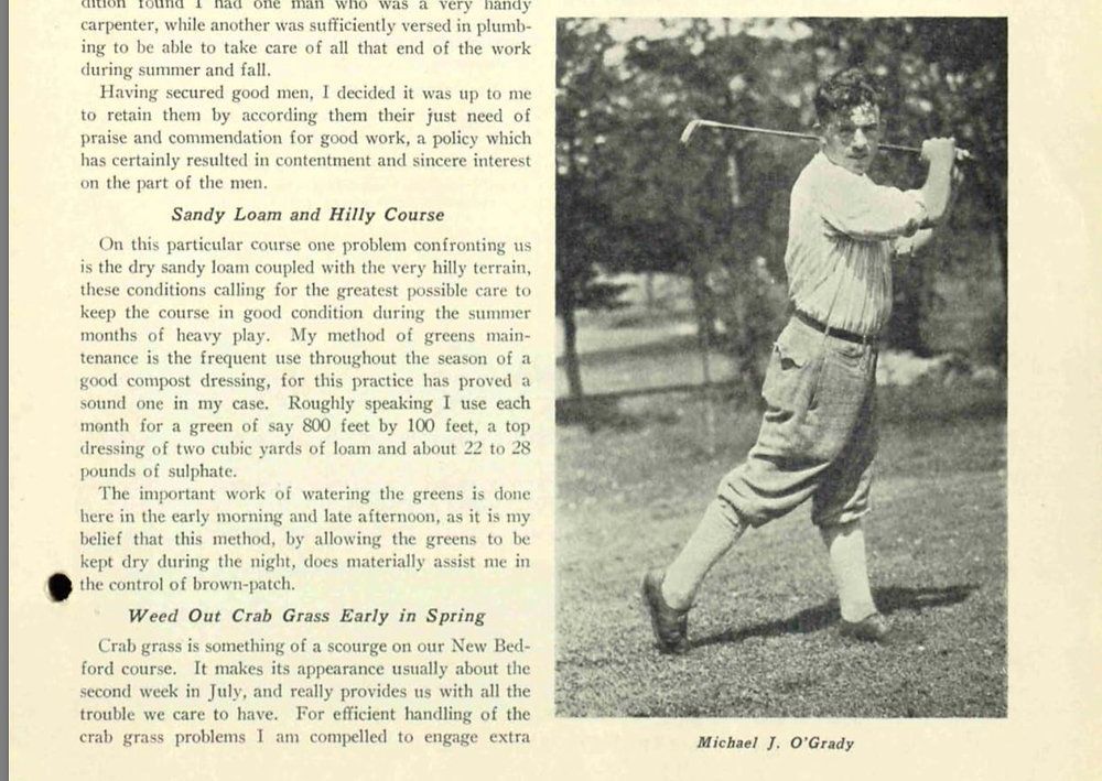 The “golfing professional” from the Hawthorn Club, Mr. David Findlay, proceeded to lay out a nine-hole links course as reported by the Boston Herald. The new location offered a much more varied terrain including a hillside, valley, ledge outcroppings, marshland and a stream. Tenant farmers were allowed to harvest their crops, some stone walls were removed, an orchard was cleared, the land was “prepared” and tilled fields were sown with grass in preparation for the new golf course.